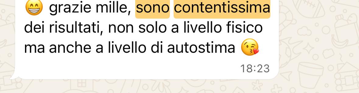 Avremo un controllo al mese in cui, innanzitutto, ti mostrerò i risultati che sono sicura raggiungerai.