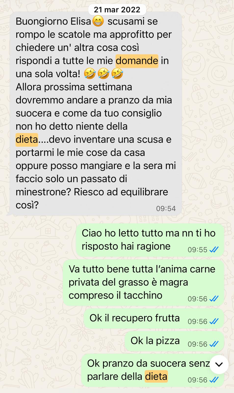 Per ogni difficoltà a mantenere la dieta, mi scrivono e studio come risolvere la situazione.